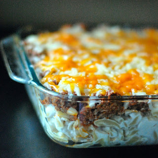 Whisk in 1 cup of cream (or can milk). Season with freshly grated pepper, salt to taste, and a dash of parsley or fresh dill. Stir butter and onion mixture, cottage cheese, sour cream, sea salt, and black pepper into the noodles. Stir in the flour and cook until the flour is absorbed. While noodles are draining, put butter in the same pot and let it start to melt a little. Melt butter in large saucepan. If you are looking to make it lighter, you can use ground turkey, low fat cottage cheese, low fat sour cream and low fat cheese. Add cold milk and stir continuously until mixture comes to a boil; Fill a pot with water and prepare egg noodles according to package directions until cooked. When the noodles cook, whisk the eggs, then whisk in the sour cream, then stir in the 2 cheeses, salt, black pepepr, onion powder, garlic powder, dry mustard, and nutmeg. Cook egg noodles and drain. Top the casserole with the remaining ½ cup of cheese. Stir until the noodles are coated with mixture.